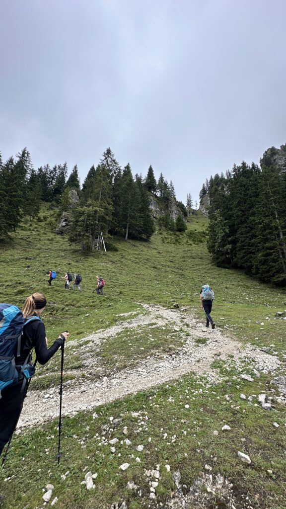 Bei teilweise leichtem Nieselregen stiegen wir gut gelaunt durch die Reichenbachklamm und über den “Bösen Tritt” zur Bad Kissinger Hütte auf, wo wir den ersten Hüttenabend verbrachten.