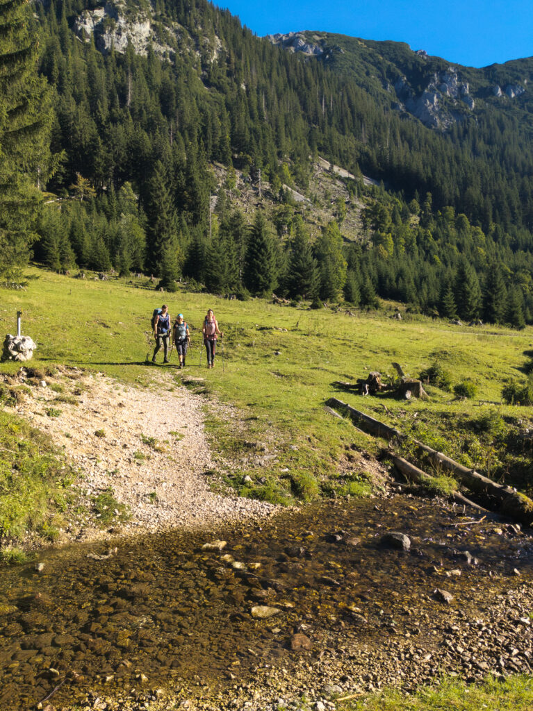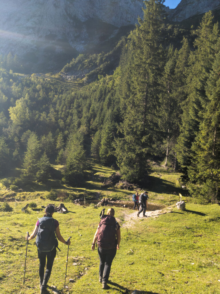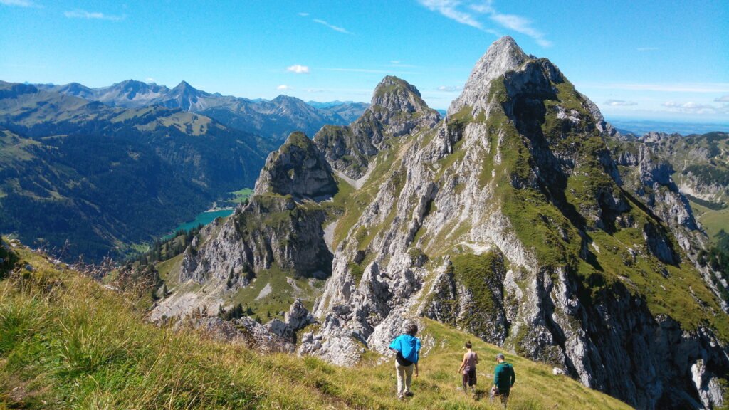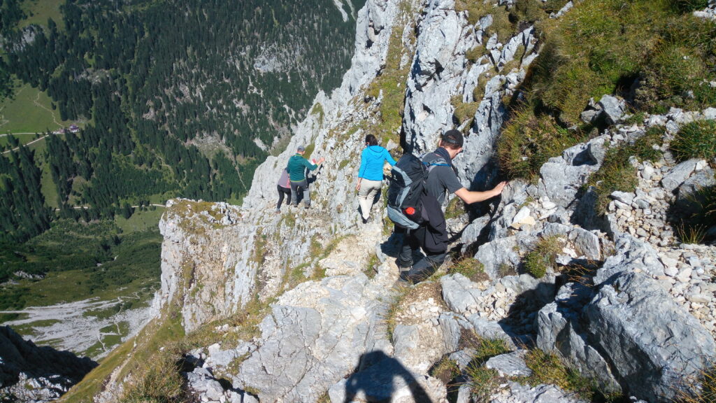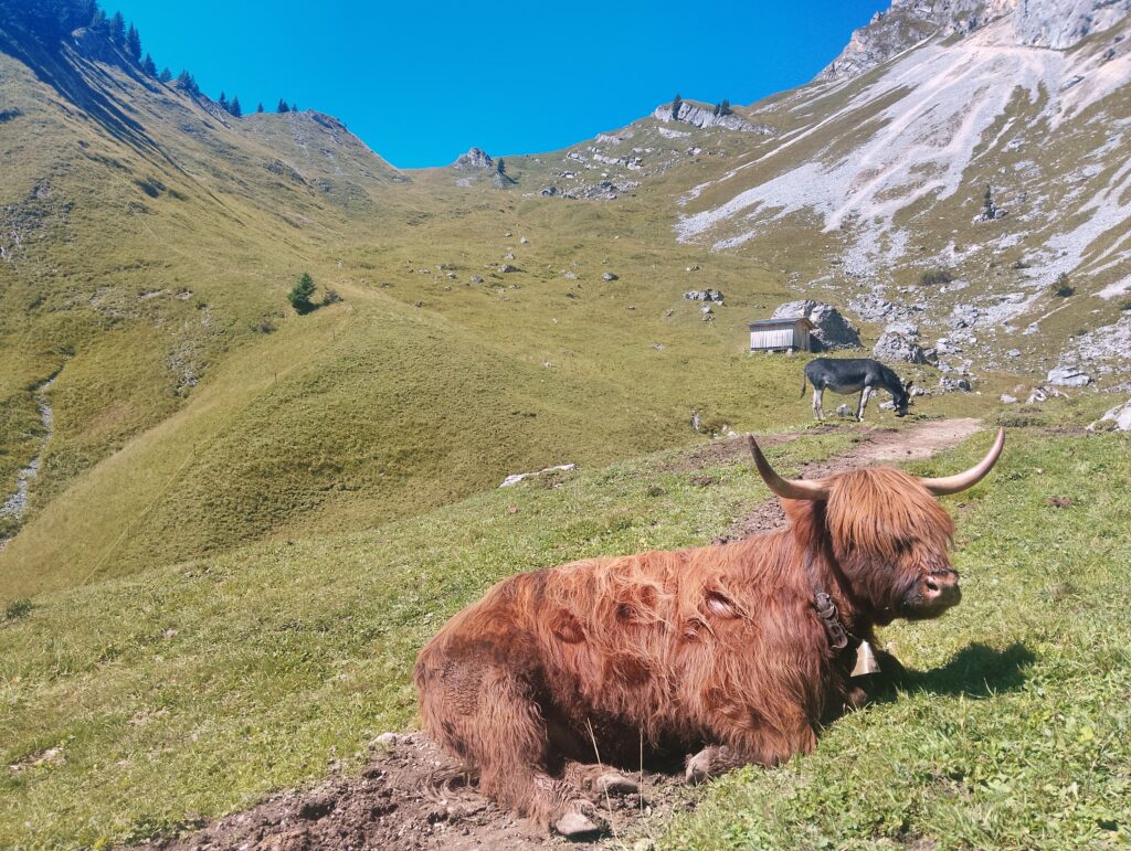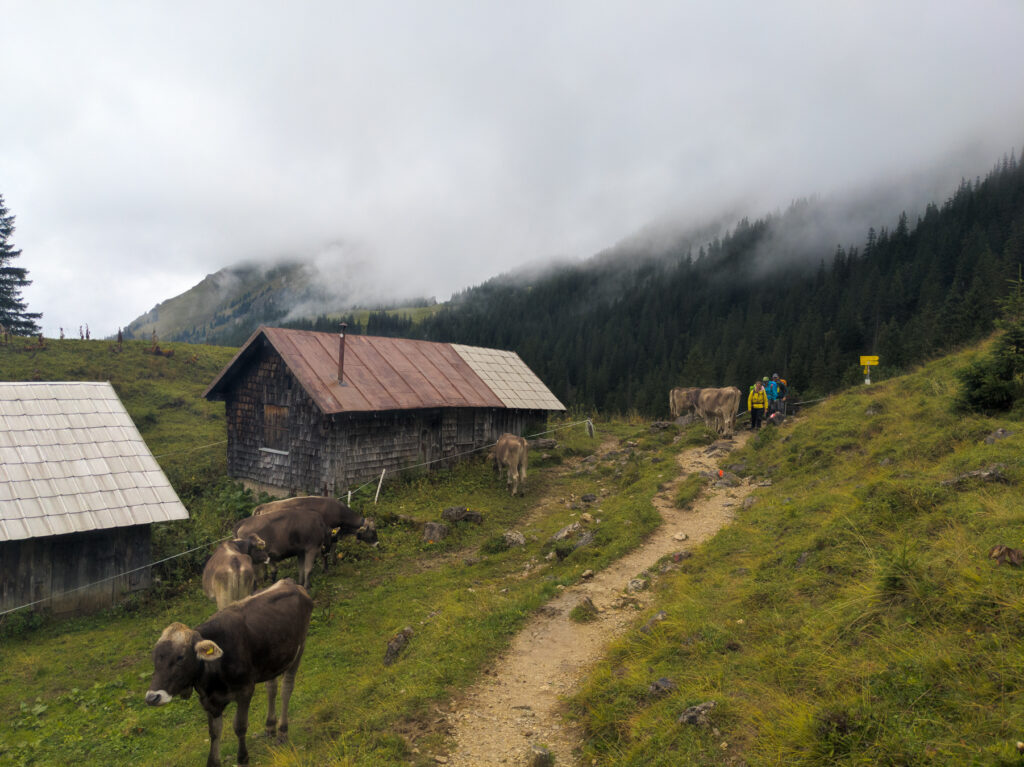 Nach der Rast dort schlossen sich noch wenige Kilometer Bergpfade bis zur Höfener Alm an. Hier hatten wir unsere Unterkunft direkt über dem Kuhstall. Am nächsten Morgen wurden wir von den Glocken der Kühe direkt unter uns geweckt und es folgte der Abstieg ins Tal zum Bahnhof in Reutte.