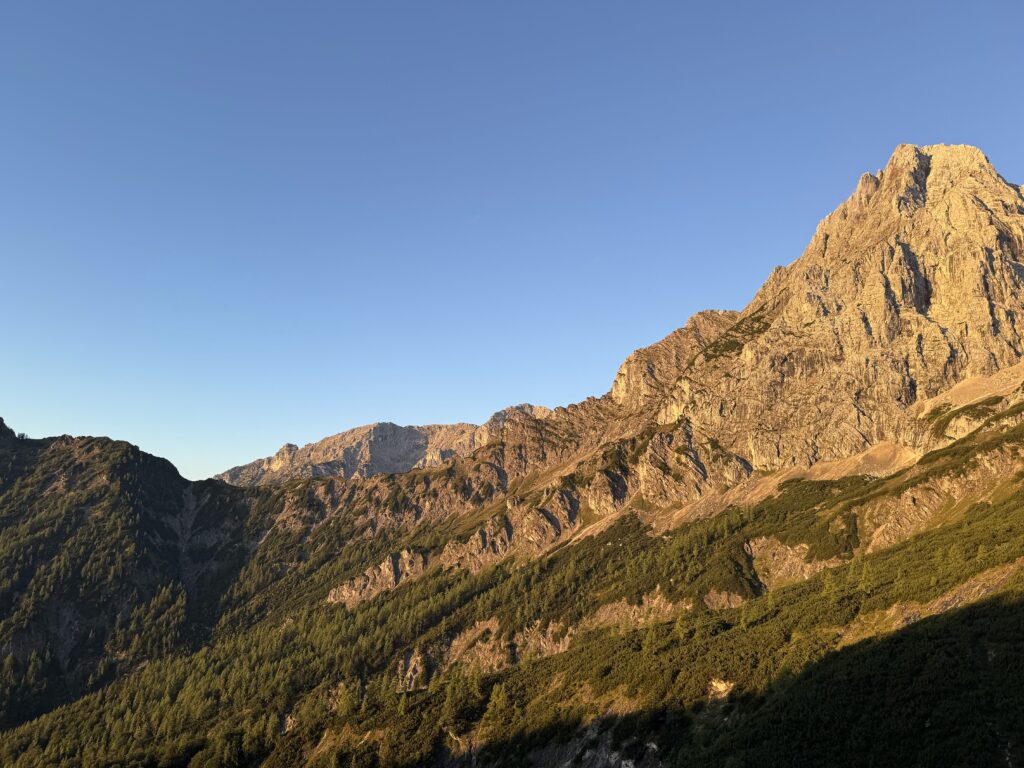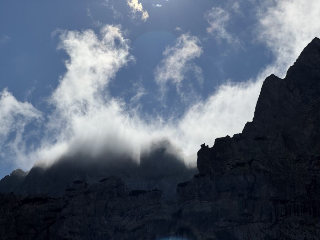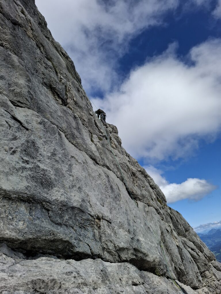 Nachdem der zur Anreise und Aufstieg genutzte Freitag noch recht verregnet war, hatten wir Samstag und Sonntag super Bedingungen zum klettern.